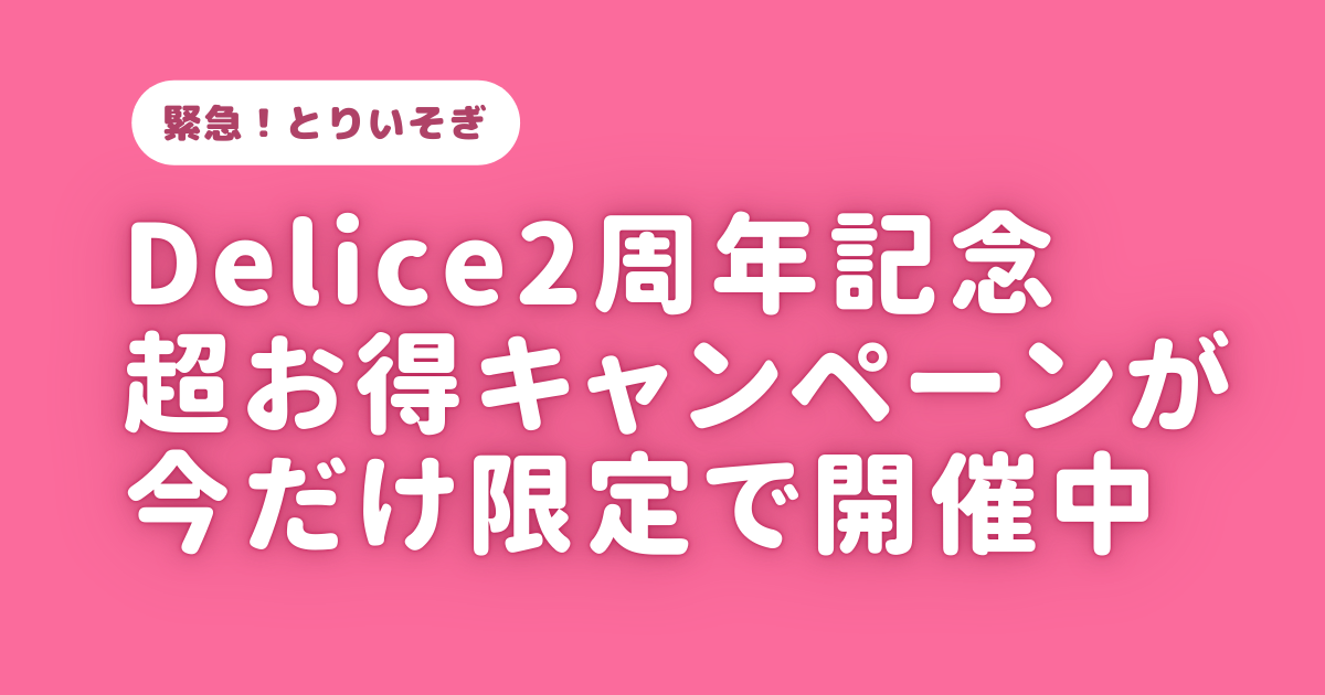 デリス(Delice) 2周年記念 超お得キャンペーンが今だけ限定で開催中!