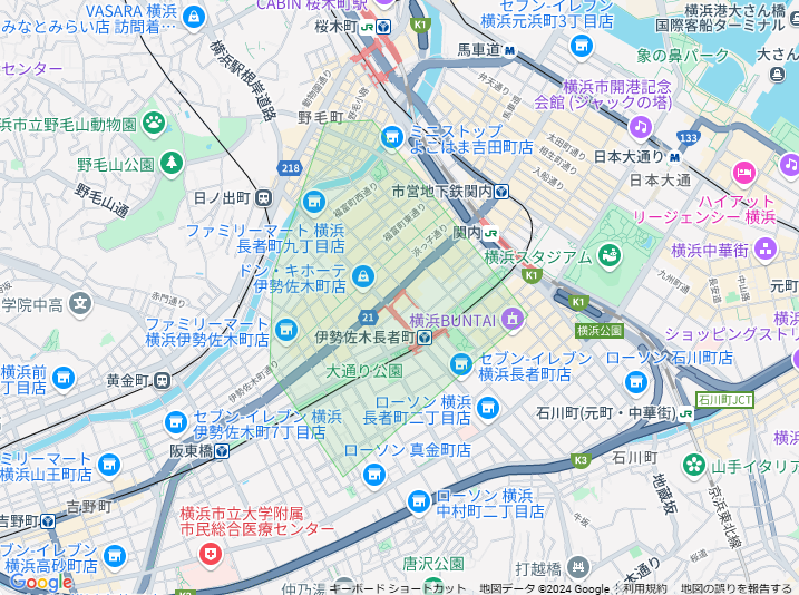 桜木町付近までエリアになってますが、主要なホテルは伊勢佐木長者町の方(マップの大通り公園あたり)。